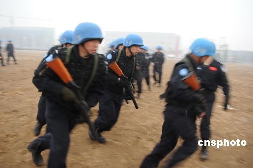 圖:中國(guó)赴海地維和警察防暴隊(duì)冒雨訓(xùn)練(3)