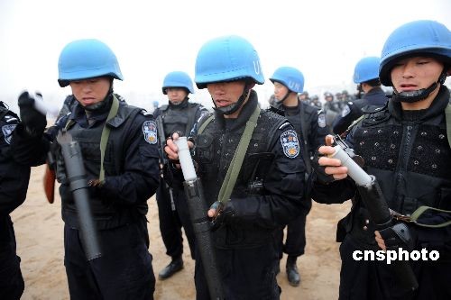 圖:中國赴海地維和警察防暴隊冒雨訓(xùn)練(4)