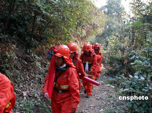 截至2月13日上午10點(diǎn)30分,福建沙縣山林火災(zāi)的明火得到總體控制,但參加撲救火災(zāi)的各方人員仍在和當(dāng)?shù)厝罕娨黄鹧采,?yán)防死灰復(fù)燃。12日12時30左右,福建沙縣高砂鎮(zhèn)端溪村突發(fā)森林火災(zāi),由于風(fēng)大,火勢迅速蔓延,已燒毀山林二千余畝。中新社發(fā) 穆長梓 攝
