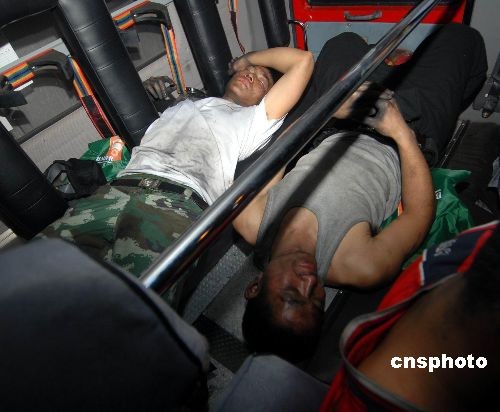 圖為13日凌晨3點(diǎn)多,疲倦的滅火消防官兵得以在消防車倉內(nèi)休息片刻。中新社發(fā) 穆長(zhǎng)梓 攝