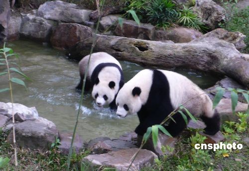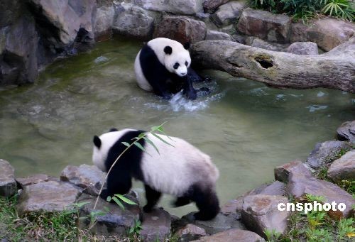 二月十四日,大陸贈臺大熊貓“團團”和“圓圓”首次在臺北新家的戶外展示場與游客見面,再度掀起臺灣民眾的參觀熱潮。當天,“團團”“圓圓”到戶外活動的興致極好,常在草地上撒歡奔跑,“團團”樂山,不時爬到山坡的最高點俯視全場; “圓圓”喜水,不時走進水池戲水玩耍。中新社發(fā) 路梅 攝