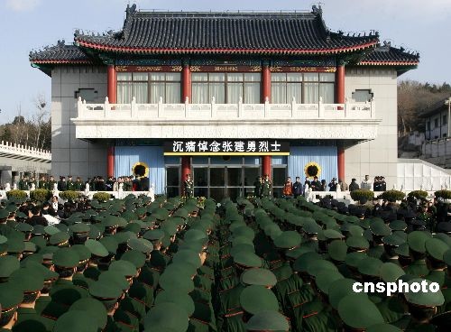 2月14日上午,張建勇烈士遺體告別儀式在北京八寶山殯儀館舉行,北京市相關(guān)單位負(fù)責(zé)人以及烈士親屬、戰(zhàn)友、生前好友600余人參加。2月10日凌晨1時(shí)40分,北京市公安局消防局朝陽支隊(duì)紅廟中隊(duì)指導(dǎo)員張建勇,在撲救央視新址附屬文化中心在建工地重大火災(zāi)中壯烈犧牲,離他30歲生日僅有16天。2月12日,中國(guó)公安部批準(zhǔn)張建勇為革命烈士。中新社發(fā) 富田 攝