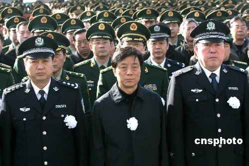 圖為央視臺(tái)長(zhǎng)趙華勇(中)和北京市公安局局長(zhǎng)馬振川(右)等參加追悼會(huì)。中新社發(fā) 富田 攝