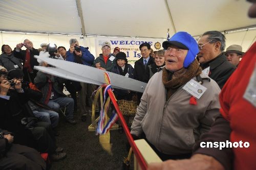 現(xiàn)年93歲廣東移民朱秋樹,1932年曾被羈留于此6個月,作為歷史見證人參加了剪彩儀式。