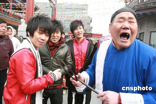 圖:花兒樂隊向“叫賣大王”學(xué)“叫賣”(4)