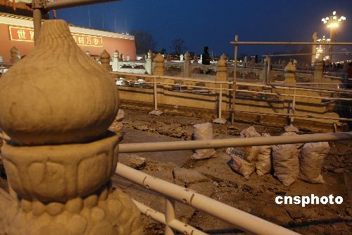 圖:北京天安門金水橋開始加固修繕(2)
