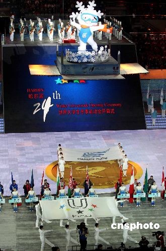 2月18日,第24屆世界大學(xué)生冬季運(yùn)動(dòng)會(huì)開幕式在哈爾濱國際會(huì)展中心體育館隆重舉行。“冰雪、青春、未來”,哈爾濱大冬會(huì)在熊熊圣火的映襯下揭開大幕,在未來10天內(nèi)來自45個(gè)參賽代表團(tuán)青春洋溢的冰雪健兒們將在賽場上展開競逐!本屆大冬會(huì)是中國首次承辦世界綜合性冬季體育盛會(huì),也是繼北京奧運(yùn)會(huì)和殘奧會(huì)后中國又一次承辦的國際性賽事。中新社發(fā) 富田 攝