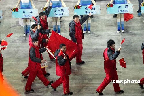 圖為在開幕式上中國(guó)代表團(tuán)入場(chǎng)。中新社發(fā) 富田 攝