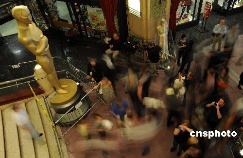 當?shù)貢r間二月二十日,大批游客在好萊塢柯達劇場入口處的奧斯卡金像模型前留影。全球影迷矚目的第八十一屆奧斯卡電影金像獎頒獎典禮將于二十二日晚在這里舉行,柯達劇場內外打扮一新,通往劇場的巨大紅地毯已經(jīng)鋪就,各項準備工作基本就緒。中新社發(fā) 張煒 攝