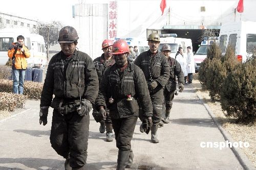 二月二十二日凌晨二時十七分,山西焦煤集團西山煤電屯蘭煤礦發(fā)生瓦斯爆炸事故,目前已造成四十四人遇難。圖為已安全升井的礦工。中新社發(fā) 張云 攝