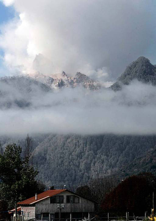 2月26日,在智利首都圣地亞哥以南1200多公里的柴滕市,柴滕火山噴發(fā)出的煙霧迷漫在空中。