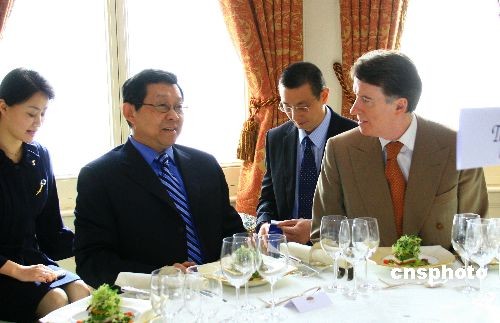 圖:陳德銘與英商業(yè)大臣曼德?tīng)柹策M(jìn)午餐