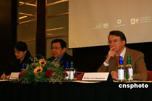 圖:陳德銘和曼德爾森在倫敦共同會(huì)見記者