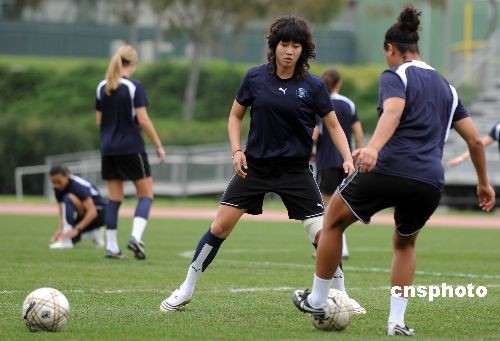 加盟美國洛杉磯太陽隊的中國女足隊員韓端三月二日與隊友一起參加新賽季開賽前的首次正式集訓(xùn)。韓端是中國國家女子足球隊的主力前鋒,曾征戰(zhàn)過兩屆奧運(yùn)會和女足世界杯等大賽。韓端加盟的洛杉磯太陽隊擁有一批世界頂級水平的女足球員,包括世界“足球小姐”巴西前鋒瑪塔。中新社發(fā) 張煒 攝