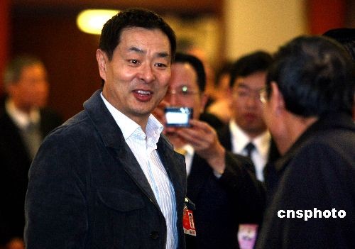 全國(guó)政協(xié)十一屆二次會(huì)議3月3日下午在人民大會(huì)堂隆重開(kāi)幕。著名演員濮存昕出席全國(guó)政協(xié)大會(huì)時(shí)與其他委員交談。中新社發(fā) 宋吉河 攝