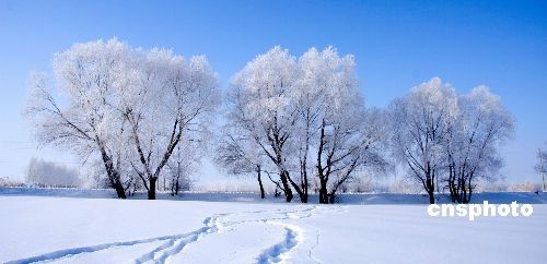 3月3日,受降溫天氣影響,阿勒泰市阿葦灘鎮(zhèn)、切木爾切克鄉(xiāng)一帶出現(xiàn)綿延數(shù)公里的霧凇景觀,在雪的襯托下,處處玉樹(shù)瓊枝、銀裝素裹、晶瑩剔透,吸引不少過(guò)路者駐足觀賞。中新社發(fā) 史志強(qiáng) 攝