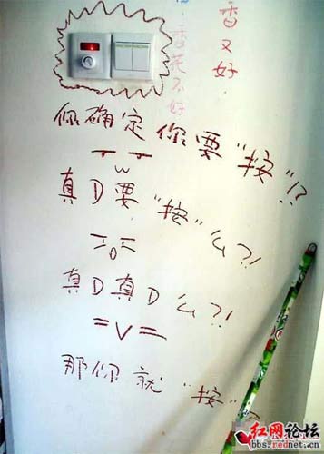 “我十分無語!痹诳戳伺盔f把宿舍惡搞之后,網(wǎng)友“泥巴”不解竟然還有那么多人來叫好!“在放假前夕,把學校搞成垃圾場一樣,被罰款了不說,校方得重新粉刷墻壁不說,作為大學生的自身素質(zhì)也該遭受到質(zhì)疑了!”