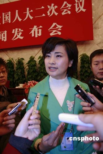 2009年3月4日,吳小莉參加十一屆全國(guó)人大二次會(huì)議新聞發(fā)布會(huì)時(shí)接受采訪,針對(duì)“香港如何應(yīng)對(duì)金融危機(jī)”這一話題回答了記者提問(wèn)。中新社發(fā) 金立冬 攝