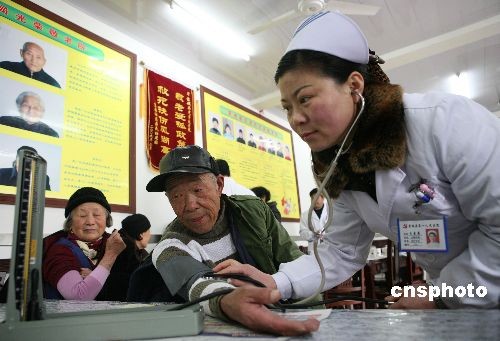 3月5日,安徽蒙城縣第一人民醫(yī)院的青年志愿者攜帶有關(guān)診療器械,來到縣民政局光榮敬老院義務(wù)為這里的老人們測(cè)量血壓、檢查身體,并接受老年健康咨詢,以實(shí)際行動(dòng)傳承雷鋒精神。中新社發(fā) 胡衛(wèi)國(guó) 攝