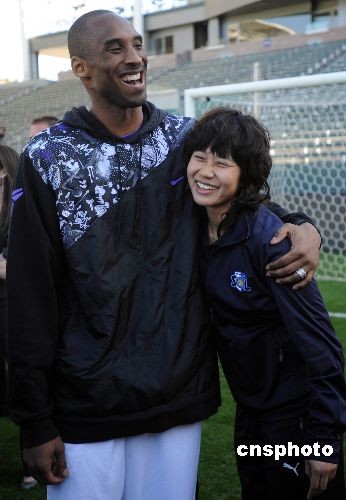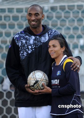 圖:NBA籃球巨星科比展示足球功夫(2)