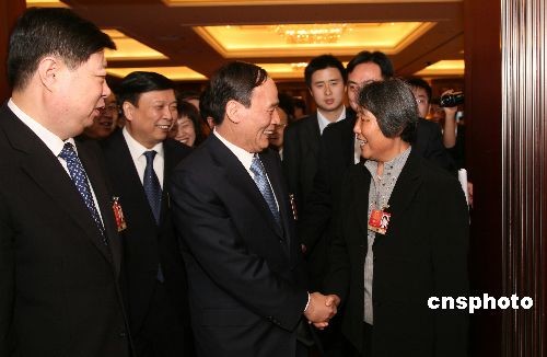 3月5日下午,山東代表團(tuán)舉行全團(tuán)會,審議政府工作報告。中共中央政治局委員、國務(wù)院副總理王岐山,全國人大常委會副委員長華建敏和代表們一起審議政府工作報告。中新社發(fā) 王輝 攝