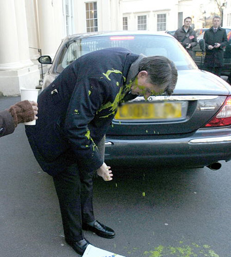 組圖:英國商務(wù)大臣遭抗議者奶油潑臉(2)