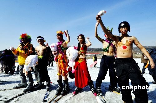 3月7日,沈陽市白清寨滑雪場(chǎng)舉行天體滑雪節(jié),活動(dòng)分為特色服裝、創(chuàng)意滑雪等項(xiàng)目,全市20位市民報(bào)名參加,挑戰(zhàn)嚴(yán)寒。中新社發(fā) 文契 攝