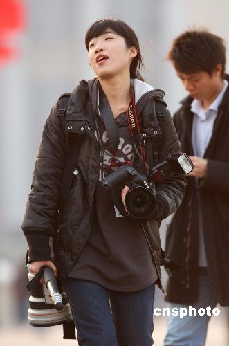 3月8日國際婦女節(jié),采訪全國政協(xié)大會(huì)的女記者身背“長槍短炮”走出會(huì)場。當(dāng)日上午,全國政協(xié)十一屆二次會(huì)議會(huì)議在北京人民大會(huì)堂舉行第三次全體會(huì)議。中新社發(fā) 盛佳鵬 攝
