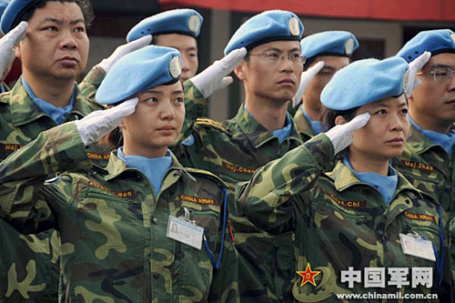 3月8日,中國(guó)第九批赴剛果(金)維和醫(yī)療分隊(duì)的女隊(duì)員在剛果(金)東部城市布卡武的維和軍營(yíng)歡慶三八國(guó)際婦女節(jié)。中國(guó)第九批赴剛果(金)維和醫(yī)療分隊(duì)共12名女隊(duì)員,全部來自蘭州軍區(qū)駐陜西的軍隊(duì)醫(yī)院。