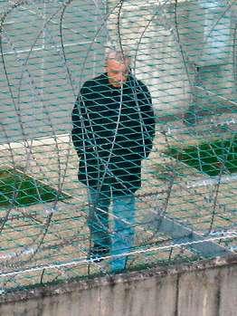 日前,弗萊茨勒在監(jiān)獄里放風時的照片被媒體公布,從這組照片中我們看到,弗萊茨勒穿著藍色的牛仔褲和高領(lǐng)的黑色夾克,頭低垂,眼睛盯著地面,手深深地插在上衣口袋里。他在監(jiān)獄的空場上一個人轉(zhuǎn)著圈子踱步,周圍是數(shù)米高帶著鐵絲網(wǎng)的監(jiān)獄圍墻。