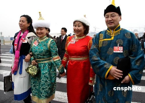 圖:少數(shù)民族委員盛裝步入大會堂