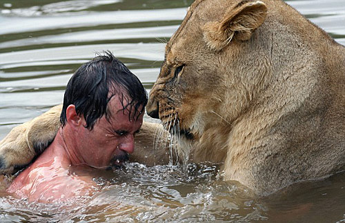 據(jù)悉,34歲的理查德森是一位動物行為學(xué)家,他能夠與人類認為最危險的動物十分融洽地生活在一起。這頭名叫“瑪格麗塔”的母獅重達185公斤,它很喜歡與理查德森開玩笑,時常將河中的水撥濺在他的身上,還在河中與他相擁相抱,有時將前爪搭在他的肩膀上。