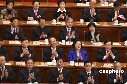3月13日,第十一屆全國(guó)人民代表大會(huì)第二次會(huì)議在北京人民大會(huì)堂舉行閉幕會(huì),全國(guó)人大代表鼓掌慶祝通過各項(xiàng)決議。中新社發(fā) 盛佳鵬 攝