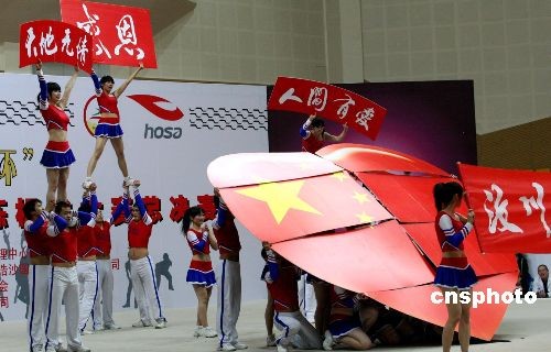 圖:汶川地震災(zāi)區(qū)30名學(xué)生北京演繹健美操