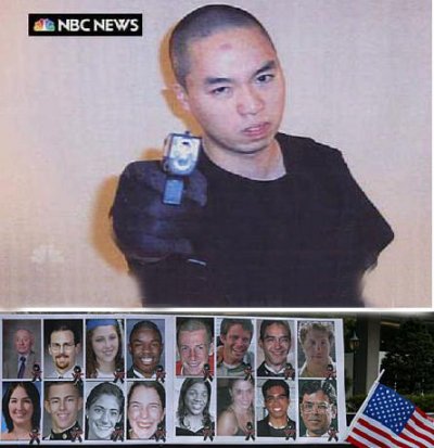 這張美國全國廣播公司2007年4月18日晚間新聞的電視截圖顯示,弗吉尼亞理工大學槍擊案兇手、韓國籍學生趙承熙擺出持槍射擊的姿勢。趙承熙16日在作案間隙曾向美國全國廣播公司寄過一個包裹,里面包括錄像帶和照片,錄像中有不少攻擊和謾罵“富人”的內(nèi)容。趙承熙在弗吉尼亞州一所大學兩個多小時內(nèi)兩度開槍行兇,造成33人死亡,20多人受傷,兇案震驚全球。