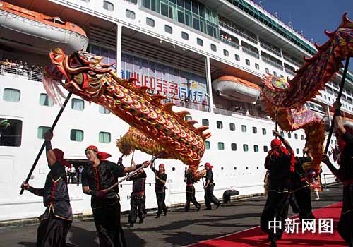 三月十六日上午八時(shí)二十分許,“安利心印寶島萬(wàn)人行”首航郵輪“海洋神話號(hào)”載著一千六百名安利中國(guó)大陸首發(fā)人員緩緩駛進(jìn)臺(tái)灣基隆港。這是兩岸基本實(shí)現(xiàn)“三通”以來(lái)第一個(gè)抵臺(tái)的郵輪直航團(tuán)。中新社記者 陳立宇 攝
