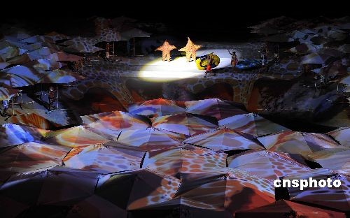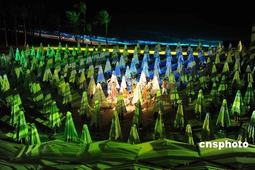 由張藝謀、王潮歌和樊躍“鐵三角導(dǎo)演”共同指導(dǎo)的大型實(shí)景演出——《印象海南島》,于3月16日晚在海南省海口市的印象劇場(chǎng)首次對(duì)外試演!队∠蟆ずD蠉u》試演近一個(gè)月,再經(jīng)過修改及完善,于4月中旬舉行的博鰲亞洲論壇期間正式公演!队∠蟆ずD蠉u》演出長(zhǎng)70分鐘,印象劇場(chǎng)可容納1600名觀眾,230名男女演員平均年齡19歲,都是在海南島經(jīng)過嚴(yán)格選拔的。