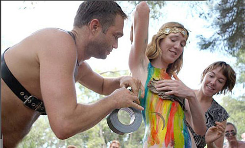 圖:彩繪、樹(shù)皮遮體蹬車 裸體自行車賽呼吁環(huán)保(5)