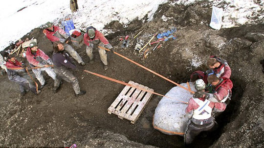 挪威古生物學(xué)者許魯姆率領(lǐng)的考察隊(duì),在挪威斯瓦爾巴群島發(fā)掘一具生存于距今1.5億年前侏羅紀(jì)時(shí)期的一只長(zhǎng)達(dá)15米的古老爬行動(dòng)物的化石。
