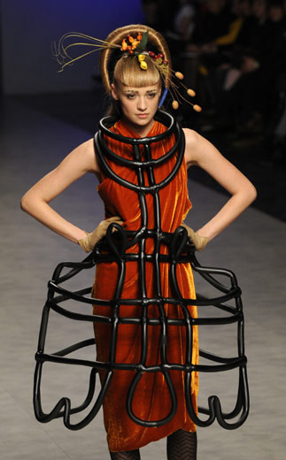 3月16日,模特在烏克蘭首都基輔舉行的時(shí)裝周上展示造型奇麗的發(fā)型設(shè)計(jì)。