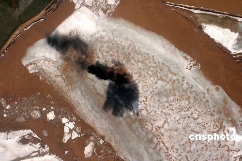 積冰區(qū)濃煙滾滾,冰花四濺。中新社發(fā) 尤中原 攝