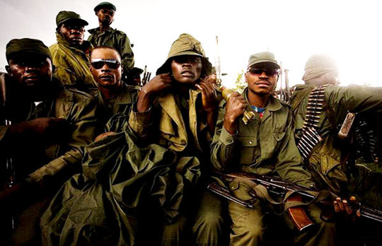 一群剛果士兵:一群剛果士兵在驅(qū)逐叛軍后坐在一輛吉普車上。(新聞?wù)掌陀涗浧?當(dāng)代事件一等獎)