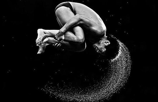 男子10米跳臺跳水:2008年8月,一名運(yùn)動員在北京奧運(yùn)會上參加男子10米跳臺跳水。(體育攝影一等獎)