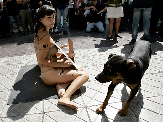 組圖:美女上演"裸身切割" 呼吁保護(hù)動(dòng)物(2)