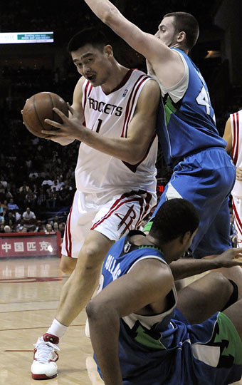 中新網(wǎng)3月21日電 北京時(shí)間今日清晨,火箭在主場(chǎng)迎戰(zhàn)森林狼。最終火箭全隊(duì)齊心協(xié)力以107-88狂勝對(duì)手,憑借46勝25負(fù)的戰(zhàn)績(jī)位居西部第三。姚明在比賽中拿下14分8個(gè)籃板,超越自己在NBA職業(yè)生涯的第9000分。阿泰斯特得到20分6次助攻5個(gè)籃板。