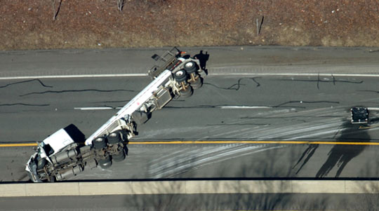 圖:美國(guó)一運(yùn)載有害化學(xué)物卡車(chē)在公路翻車(chē)(2)