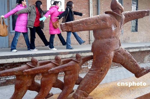 圖:北京798藝術(shù)區(qū)諧趣雕塑吸引游客