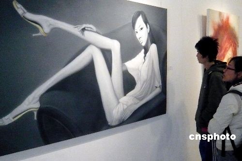 3月22日,位于北京朝陽(yáng)區(qū)的798藝術(shù)區(qū)內(nèi)中外游客絡(luò)繹不絕。作為中國(guó)當(dāng)代藝術(shù)文化展示園區(qū),這里匯集了中國(guó)當(dāng)代藝術(shù)家不同門(mén)類、派別、風(fēng)格的多元化藝術(shù)作品,呈現(xiàn)出百家爭(zhēng)鳴的繁榮景象。圖為北京798藝術(shù)區(qū)繪畫(huà)作品吸引游客。中新社發(fā) 錢興強(qiáng) 攝