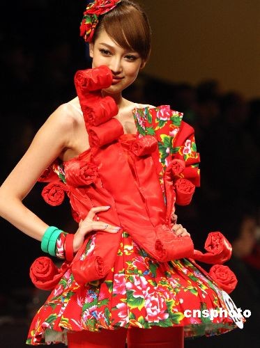 3月24日,中國國際時(shí)裝周(09/10秋冬系列)在北京隆重開幕,本屆時(shí)裝周將在D.PARK北京會(huì)所、北京飯店等主場地舉辦為期一周的專場發(fā)布、專項(xiàng)大賽、專題論壇等專業(yè)活動(dòng)近40項(xiàng),時(shí)裝周將期間將有來自國內(nèi)外的近20個(gè)知名品牌舉辦流行趨勢發(fā)布。圖為在開幕式上舉行“漢帛獎(jiǎng)”第17屆中國國際青年設(shè)計(jì)師時(shí)裝大賽作品展示。中新社發(fā) 錢興強(qiáng) 攝