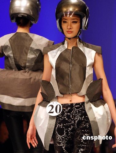 3月24日,在北京開幕的中國國際時裝周(09/10秋冬系列)展示系列活動上,舉行了第17屆中國國際青年設(shè)計師時裝作品大賽決賽,來自18個國家的31位青年設(shè)計師和來自中國15個省市地區(qū)的24位設(shè)計師參加作品展示。圖為模特展示頗具太空感的時裝作品。中新社發(fā) 錢興強(qiáng) 攝